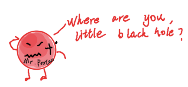 Schwarzschild radius can be seen as the “size” of the black hole, and the size of a 10 kg black hole is about 1.5*10^-26 meters. Interestingly, this radius is much smaller than a proton, which means that the 10 kg black hole cannot even swallow an atom.